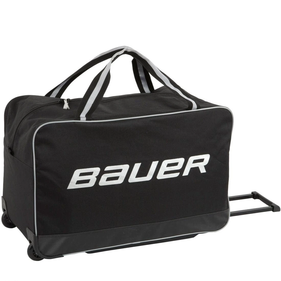 New to this season is the Bauer Core Youth Wheeled Hockey Bag. This bag covers all the bases with its heavy duty polyvinyl construction, large main compartment with a straight zipper, and an extension pull handle for effortless mobility.