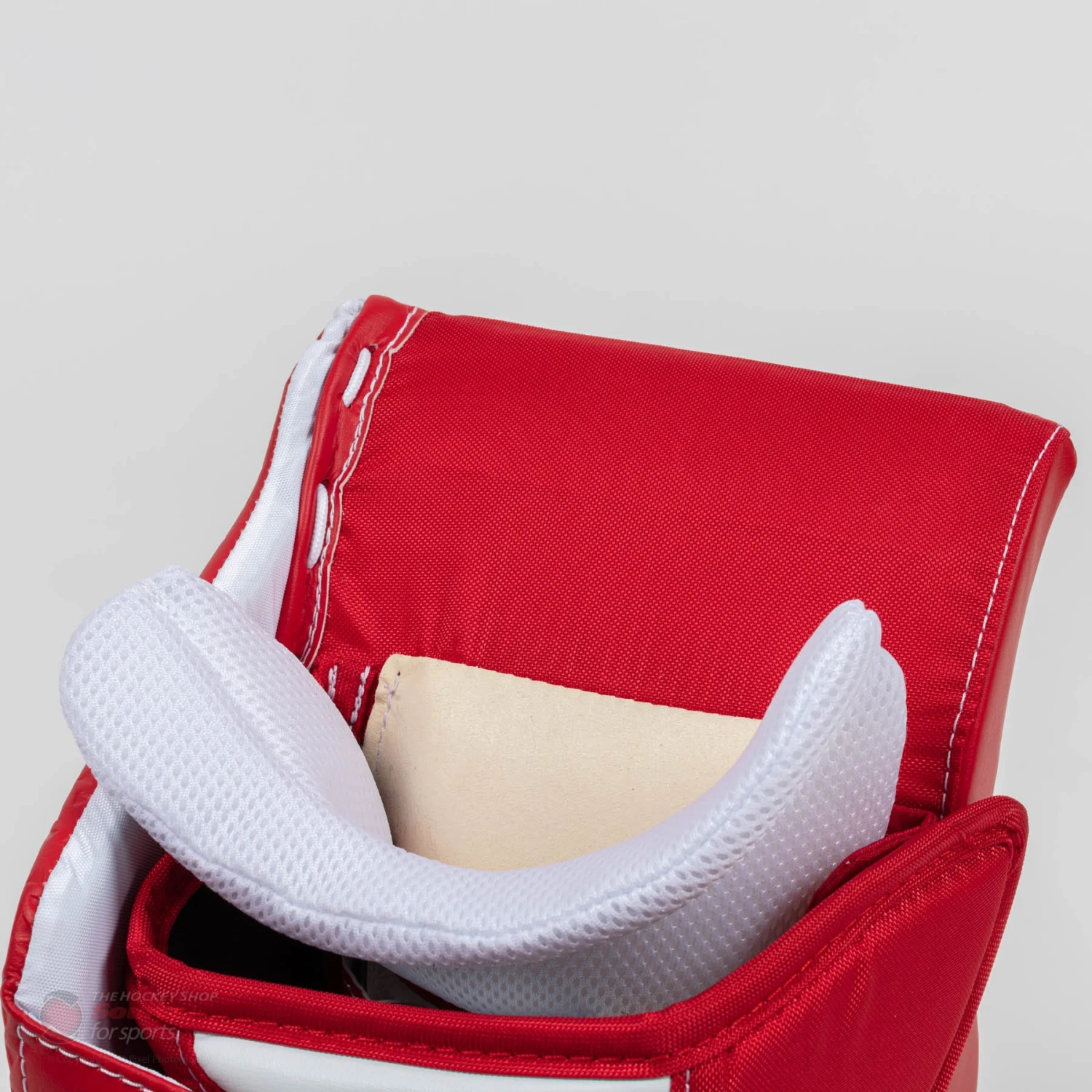 The cuff on the Bauer GSX blocker has a velcro closure, enabling a well fitting blocker, but allowing mobility and freedom to move and adjust.