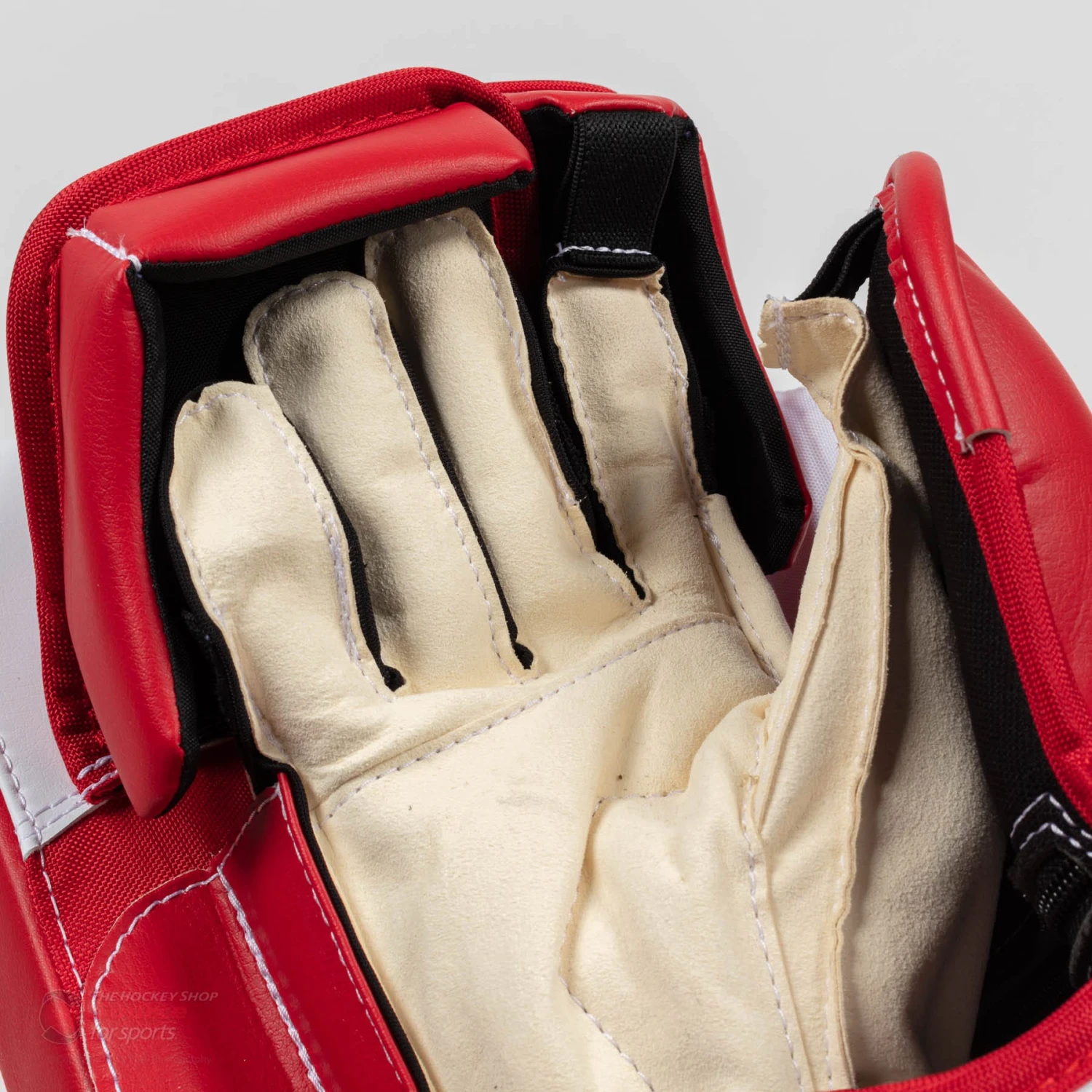The design on the GSX blocker finger protection is somewhat similar to what’s featured on the Bauer 3S model. The GSX finger protection version comes in slightly shorter along the pinky, middle, and ring fingers. As well the finger protection is entirely foam and synthetic leather.