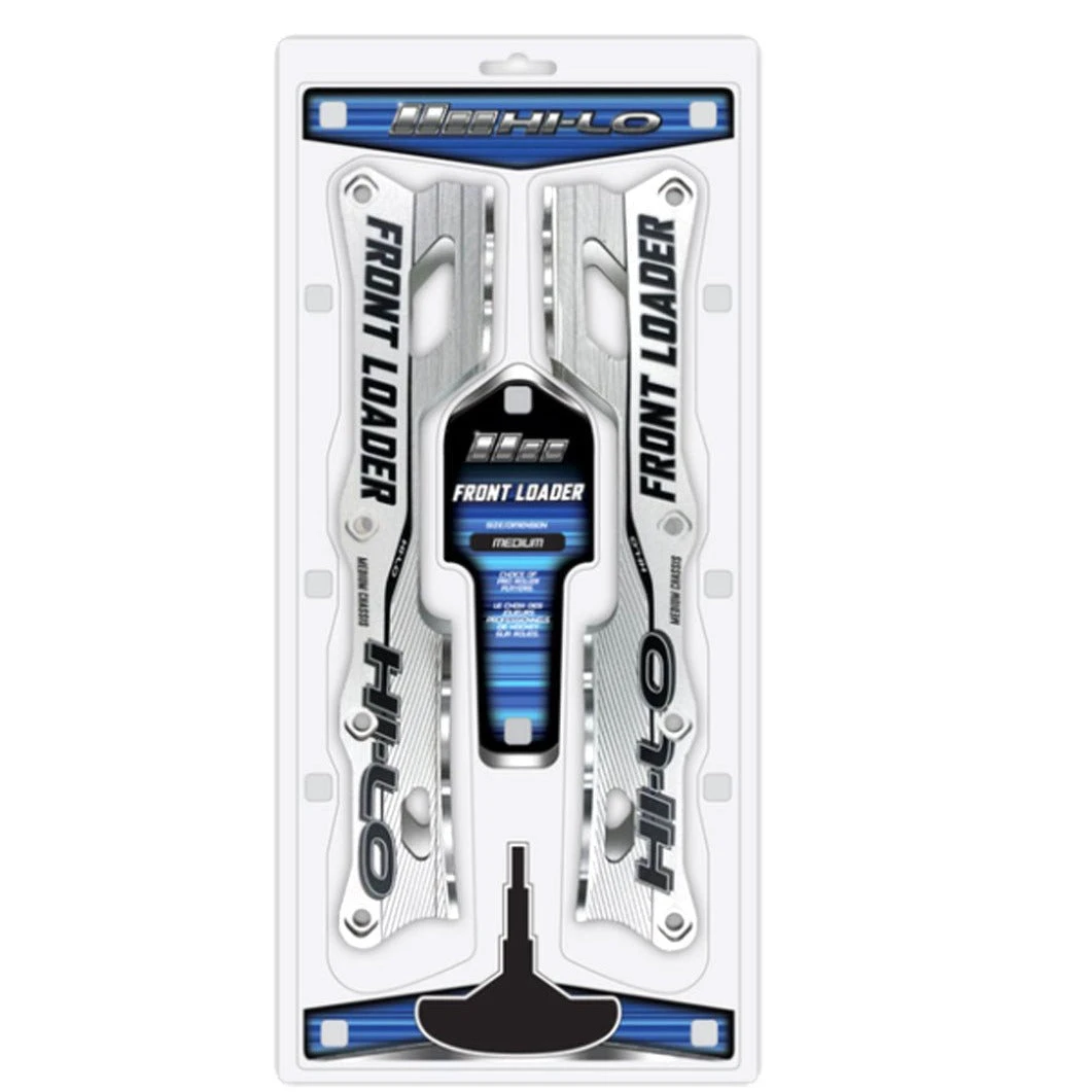 The Bauer Hi-Lo Frontloader Goalie Chassis is a high performance aluminum roller hockey chassis that is designed for Goalie Skates. The design of this “Frontloader” Chassis is to naturally lean the goaltender forward by raising the back end of the chassis up slightly for a more comfortable stance. There is space given ahead of the back wheel for a boot strap to loop through, so you don’t have to worry about tripping over yourself.