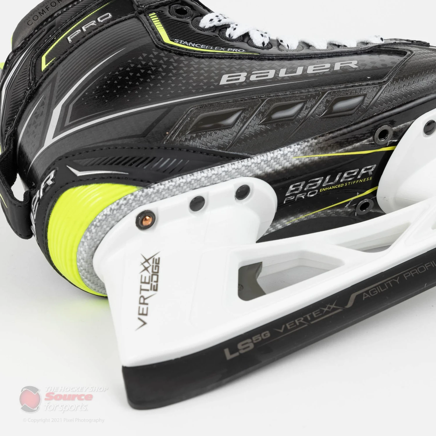 The Pro skates stick with the Vertexx edge holder and LS5G steel combo as seen on all of their elite level goal skates in recent years. The LS5G steel on the Pro skates does feature a new agility profile which does as the name implies by putting goalies slightly more on the ball of their foot.