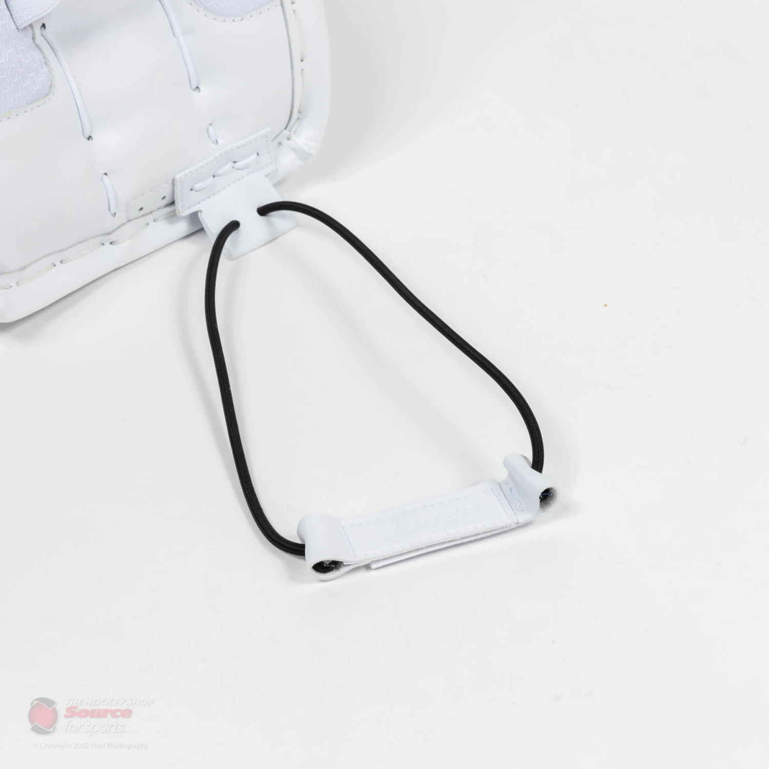 The new Supreme line will feature Bauer’s new bungee cord toe strapping system. The stretchy toe tie system will allow the leg pad the flexibility to move freely with a quick rebound back into its original position. The toe cords are offset on the pad off the shelf, but have additional positions to be centred if preferred.