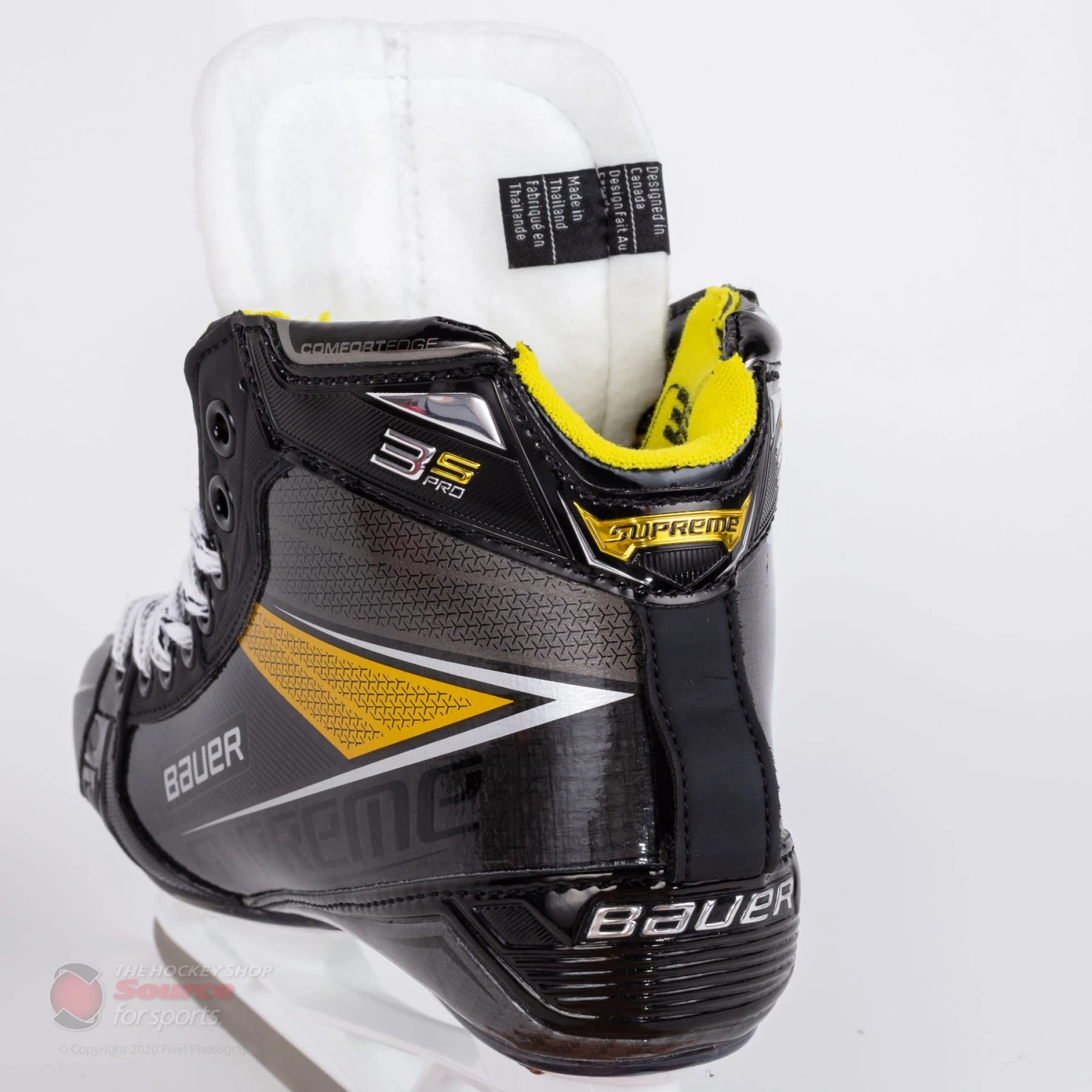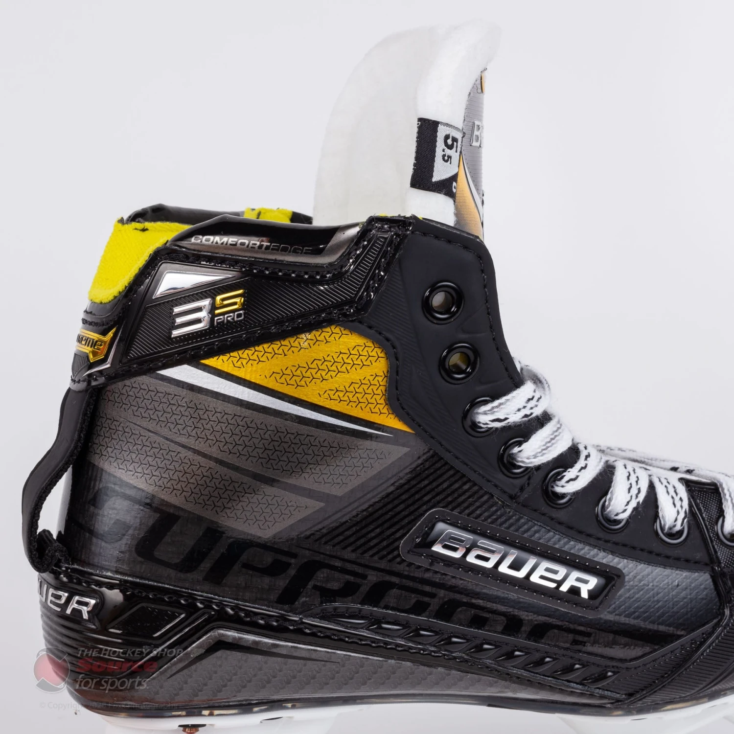 The Bauer Supreme 3S Pro INT Goalie Skates are designed with the performance level goalie in mind. Using Aerofoam ankle padding and a new deeper fit profile, they provide superior comfort while a lightweight 3D Curv quarter and a redesigned toe cap make for a lightweight, high performing skate at an affordable price.