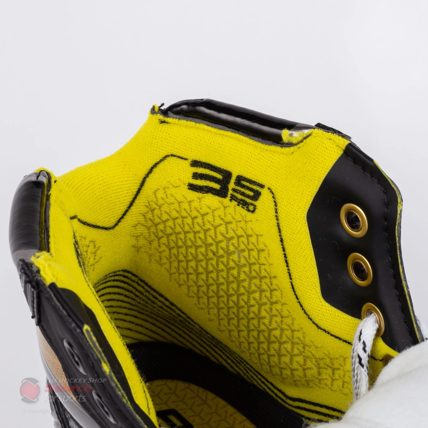 The Supreme 3S Pro goal skates use Bauer’s grip liner to lock your foot in place throughout the game. They also feature a new Aerofoam ankle padding for superior comfort and reduced weight compared to the previous S29 skates.