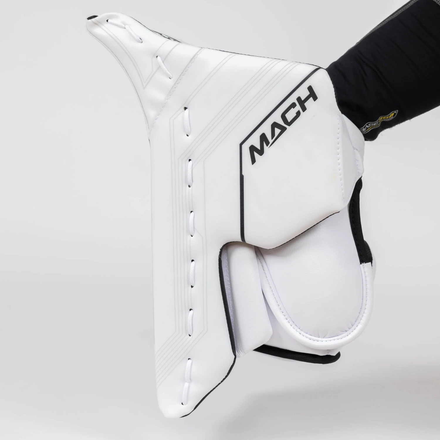Bauer took to demonstrating their goalie expertise with the new Supreme Mach goalie blocker. Featuring a Connekt+ liner and palm, CURV composite in the board, and a Range of Motion (R.O.M.) cuff, the Mach blocker looks to continue the legacy of the Supreme line by offering elite-level performance to your game.