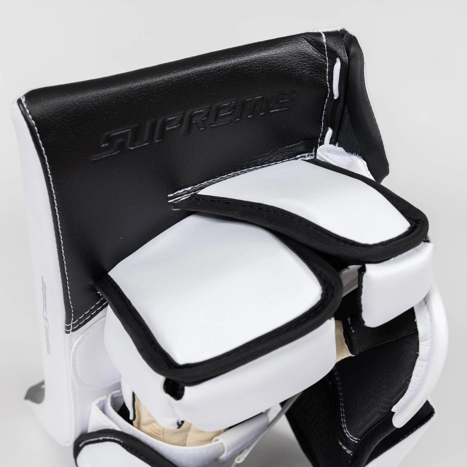 The highest-end Supreme goalie blocker now uses a Connekt+ palm, similar to its Vapor Hyperlite counterpart and some top-of-the-line gloves on the player side. Connekt+ is designed to optimize the relationship between your hand and the stick, making maneuvers and puck handling just that much more efficient.