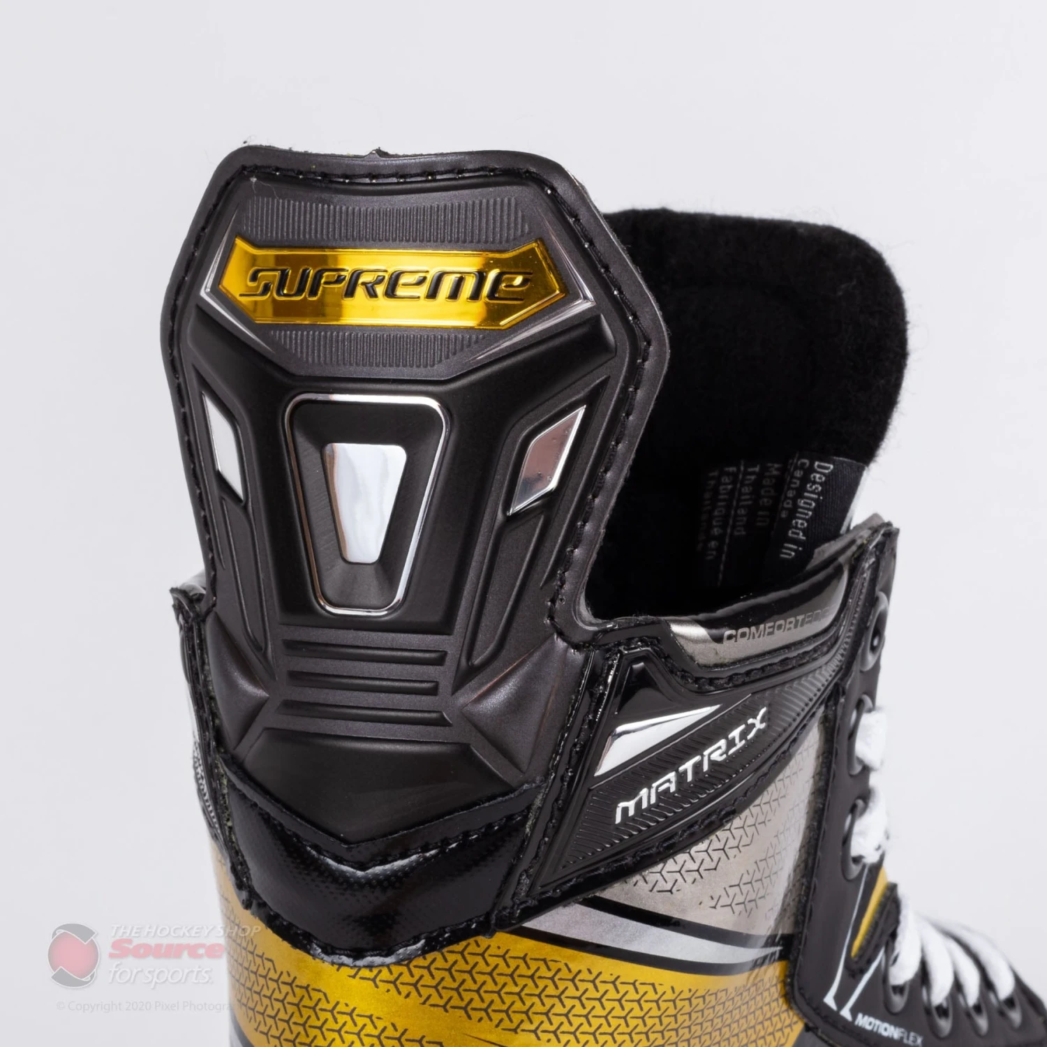 Bauer has constructed the Supreme Matrix with the focus on performance level hockey players. The Supreme Matrix features a Fiber composite quarter package with Motion Flex technology. The Motion Flex Technology used in the Matrix increases stability in the boot while offering exceptional ankle flexion. Comfort Edge Padding compliments the top of the boot to reduce bite when performing starts, stops, and aggressive tight turns.