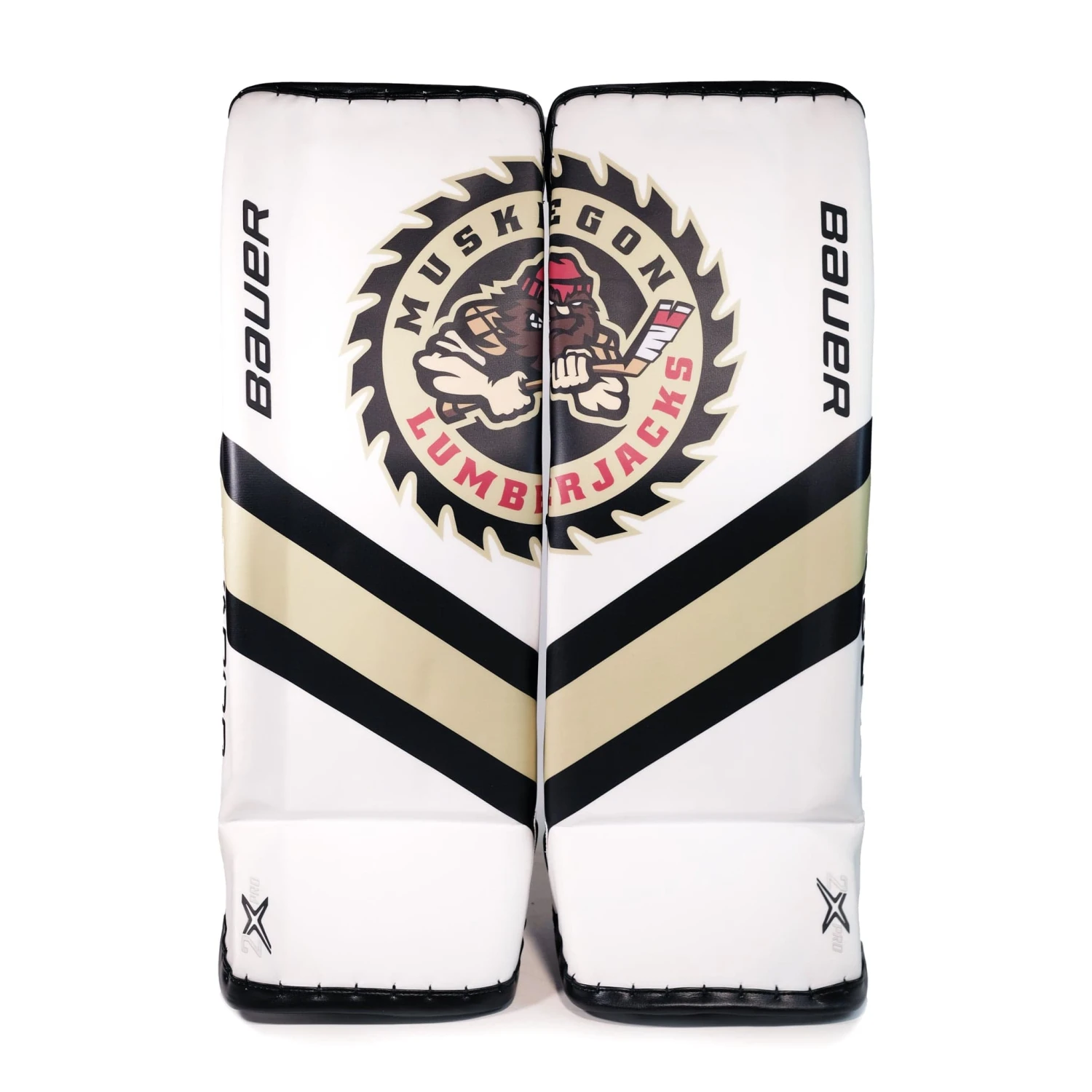 This custom Supreme Ultrasonic leg pad is a pro return from Muskegon Lumberjacks