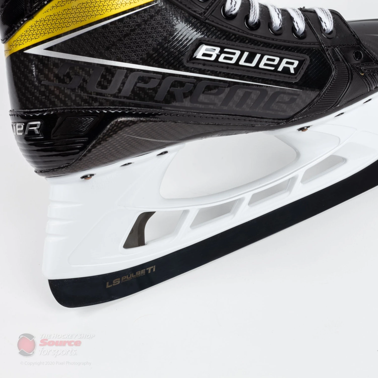 This will be the first season with newly introduced Tuuk Lightspeed Pulse Ti Blade on the Ultrasonic skate. What you will see in this steel compared to the LS5, is a new Titanium coating which delivers premium edge retention, a premium grade steel composition which allows for easier sharpening and increases the lifetime and durability of the blade. One addition to this steel that you did not have the option of doing on the LS5 is honing the steel. Bauer has used a high anti-corrosion finish which is strong enough to withstand a traditional honing stone. This season, you will receive a Power Profile which will only come when you buy the Ultrasonic. Bauer has built a strong working relationship with ProSharp and believes the Power Profile (Quad series) suits the Supreme line very well. You will maximize control, speed and more power from your stride all while being able to do so on a shallower sharpening. Any Pulse Ti steel you purchase aftermarket will be a generic profile for custom profile options done by us!