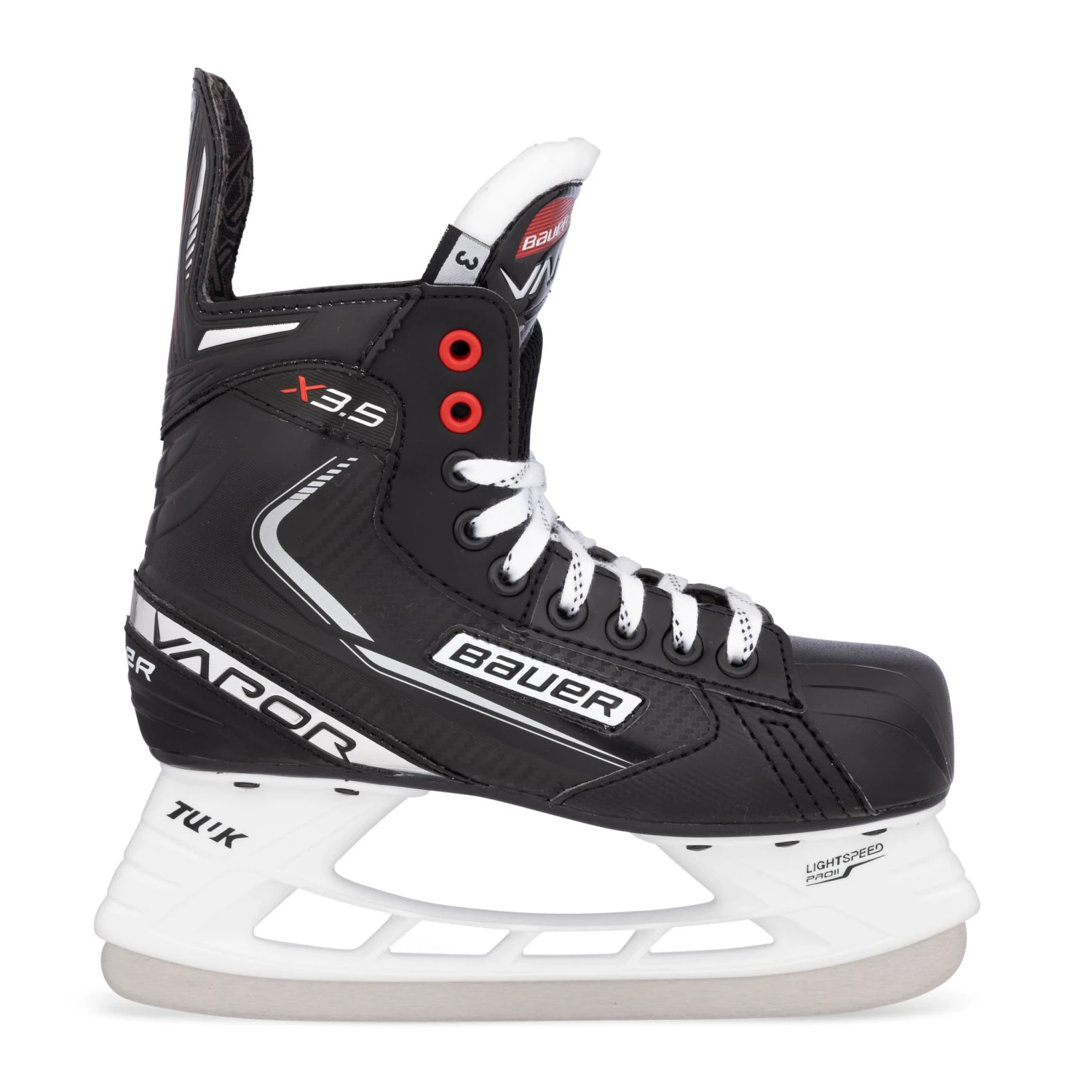 Rounding out the Vapor collection is the Bauer Vapor X3.5 JR Hockey Skates. Bauer built this skate from their newly introduced 3D Poly Carbon quarters to bring outstanding visual richness. The X3.5 is designed to be an easy-to-skate-on boot for the recreational skater.