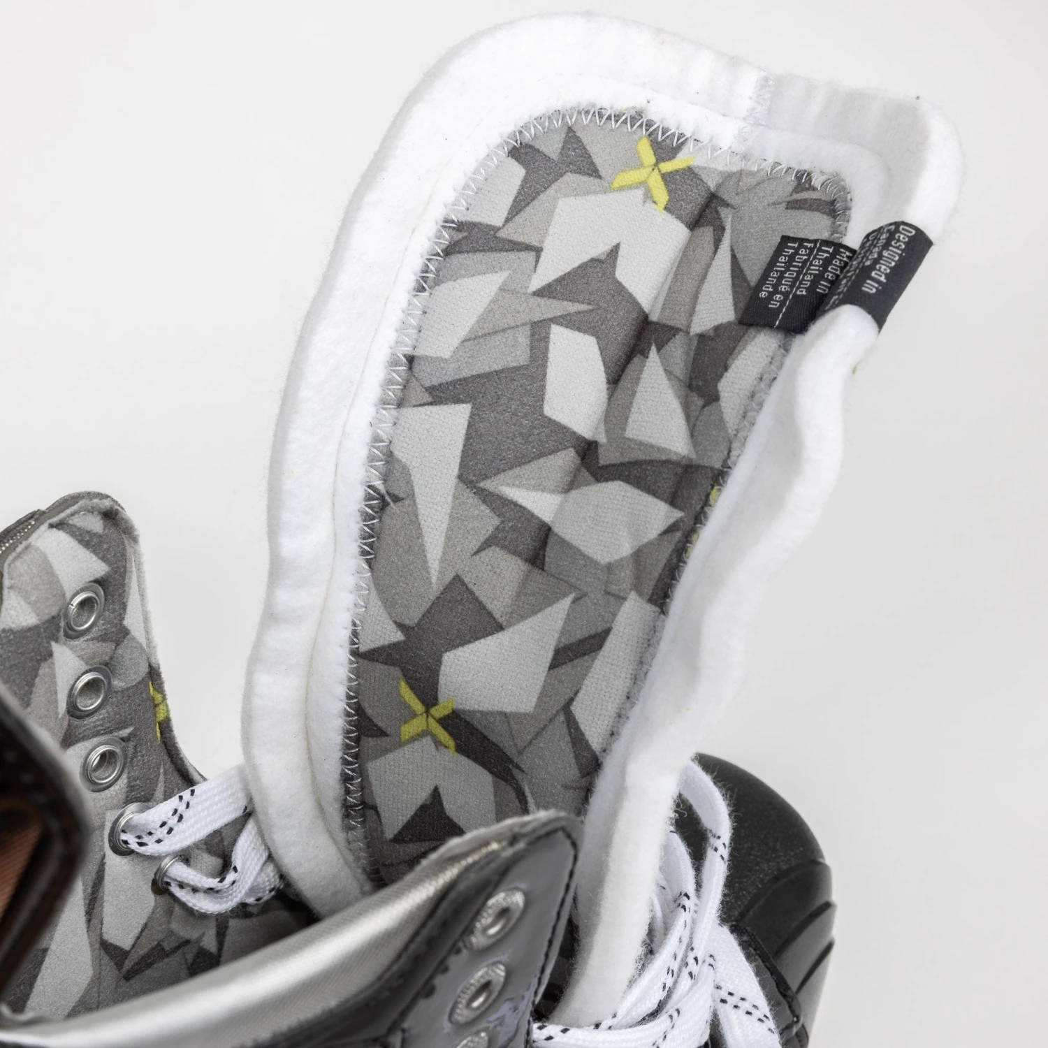 The skate uses Bauer’s Form Fit footbed, which is made of a contoured foam material that molds to the shape of the player’s foot over time. This helps provide a personalized fit and improves overall comfort by reducing pressure points and enhancing stability.