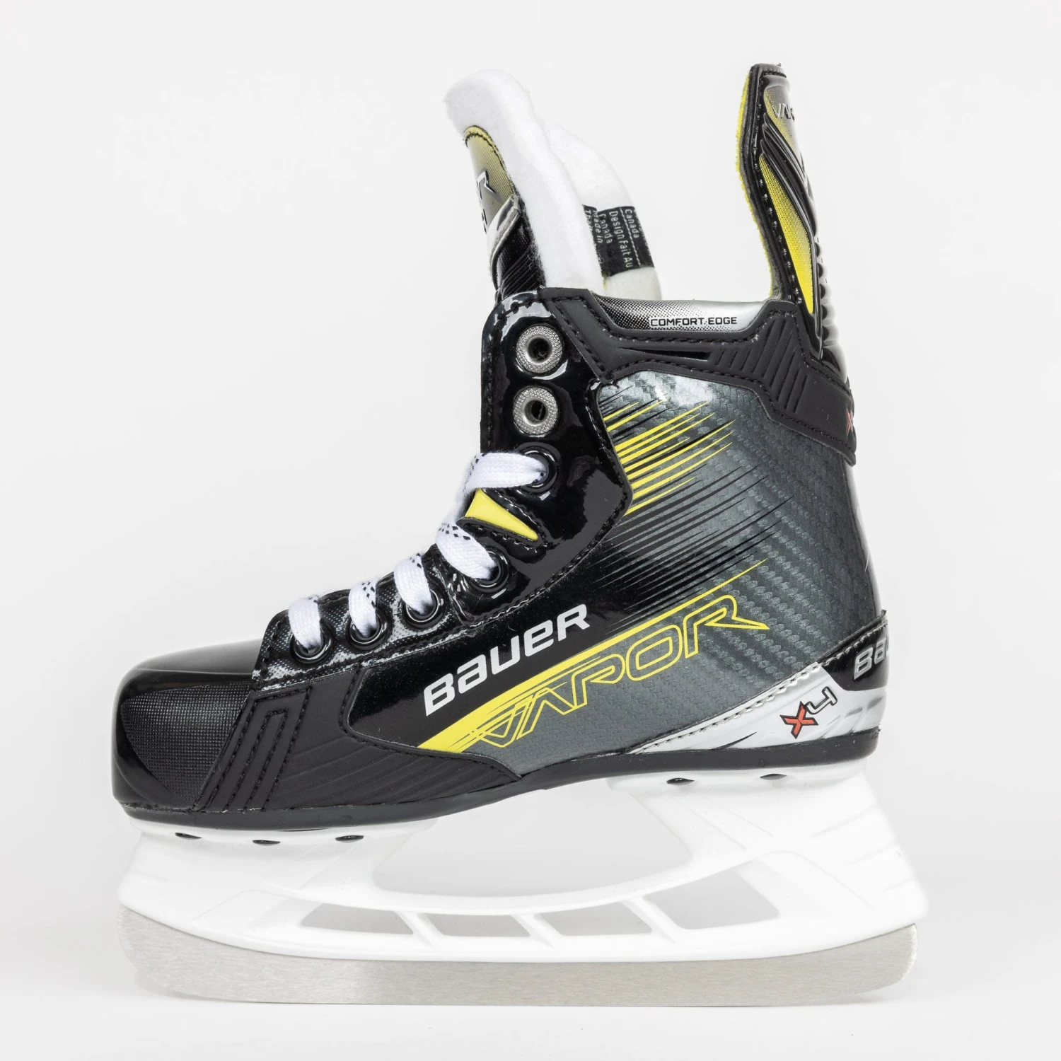 The Bauer Vapor X4 hockey skate is designed with a focus on comfort and performance, incorporating advanced liner and internal padding technologies. The memory foam ankle padding contours to the shape of the ankle, providing a customized fit and excellent support. The Comfort Edge along the top enhances overall comfort and reduces pressure points on the turn while skating and the sublimated liner’s moisture-wicking properties are there to help keep your feet dry and comfortable.