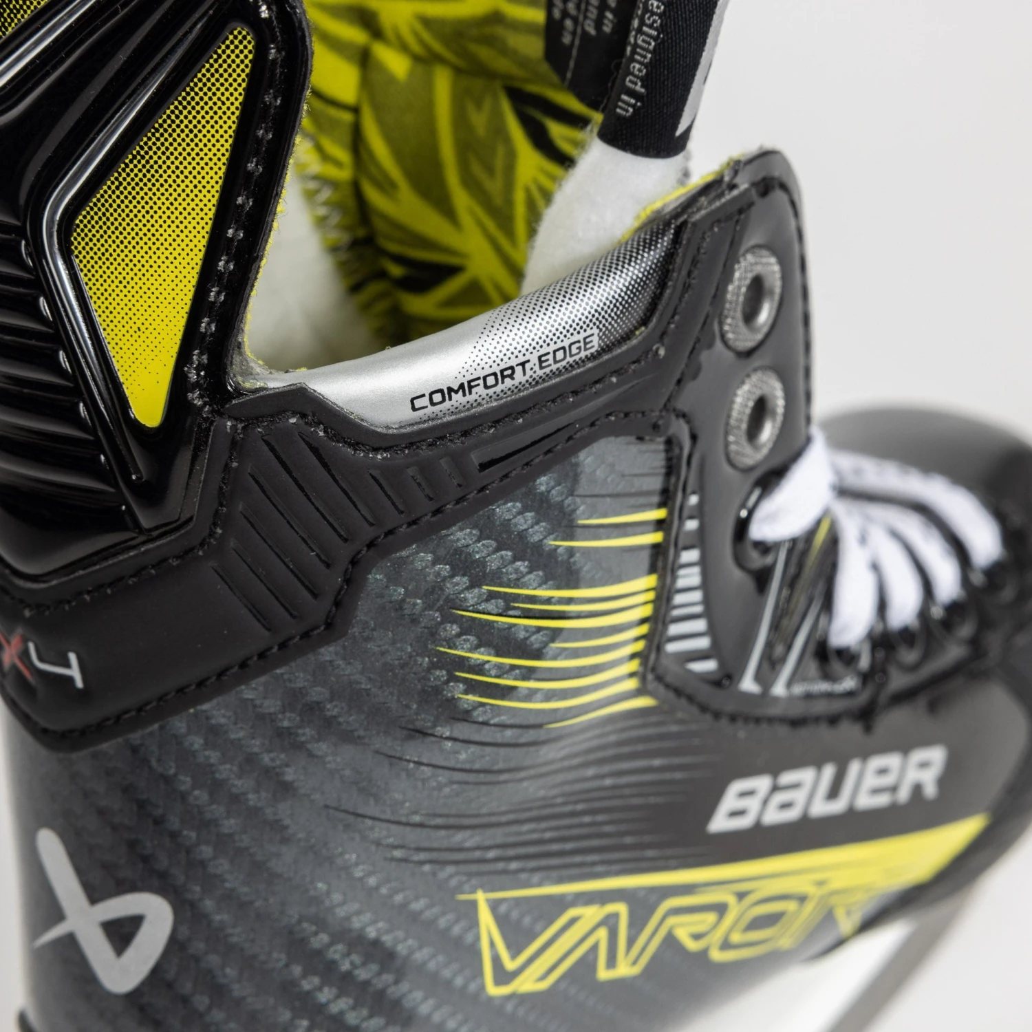 The Vapor X4 uses Bauer’s Form Fit footbed, which is made of a contoured foam material that molds to the shape of the player’s foot over time. This helps provide a personalized fit and improves overall comfort by reducing pressure points and enhancing stability.